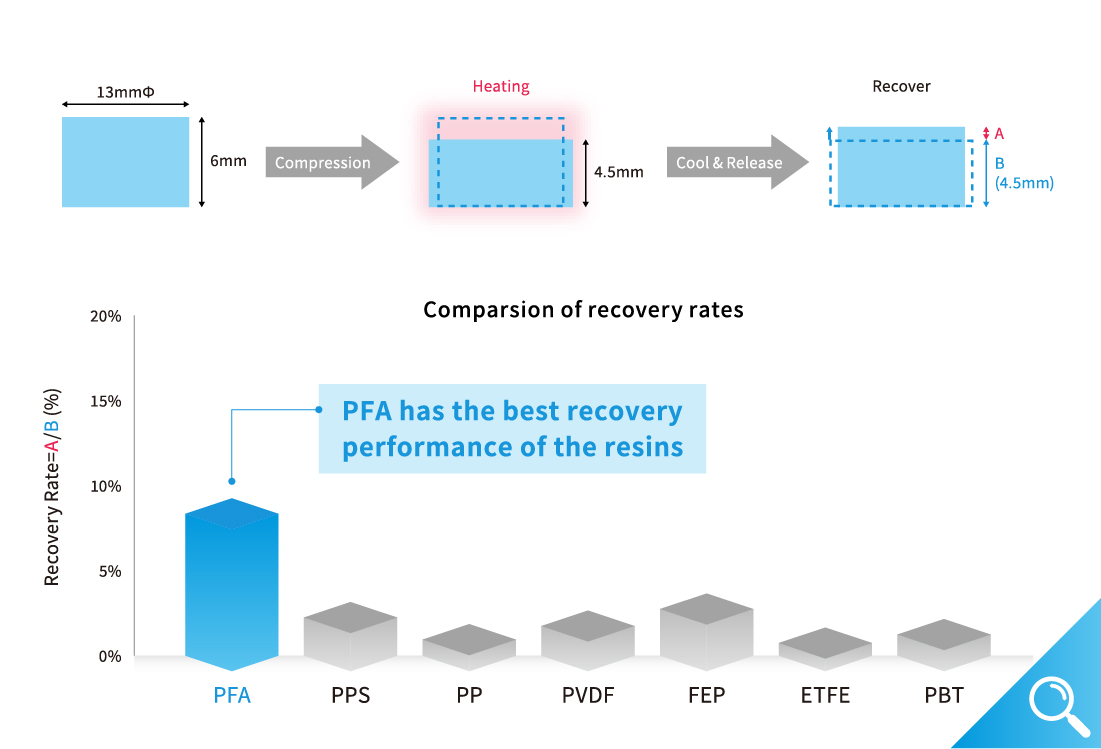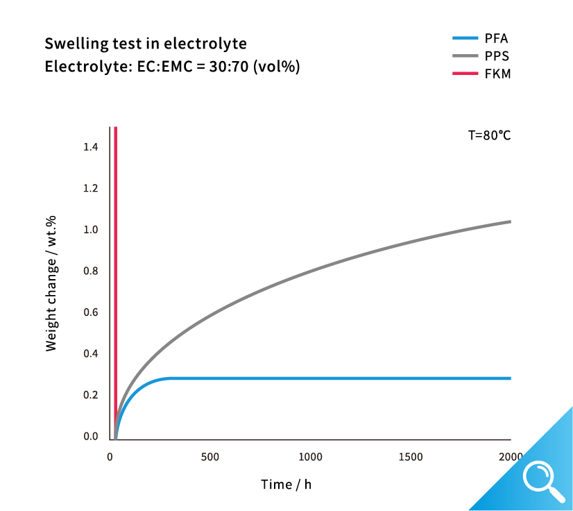 NEOFLON PFA is the best suited gasket material for long term use in lithium-ion batteries due to the excellent sealing performance, electrolyte resistance, and moisture barrier.